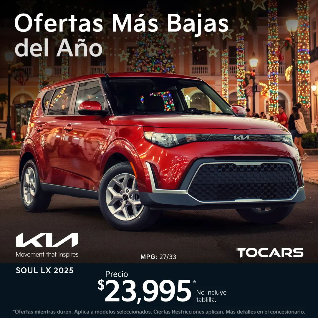 APR desde 2.99% únicamente para unidades nuevas Kia 2025/2026 con la siguientes Cooperativas participantes: COOP Zeno Gandia, COOP Manatí, Cooperativa Roosvelt Roads, BoniCOOP, COOP Las Piedras. APR varía por término de 48 a 84 meses y por empírica de 650 a 780. Sujeto a aprobación de crédito. Oferta válida hasta el 30 de noviembre 2025.