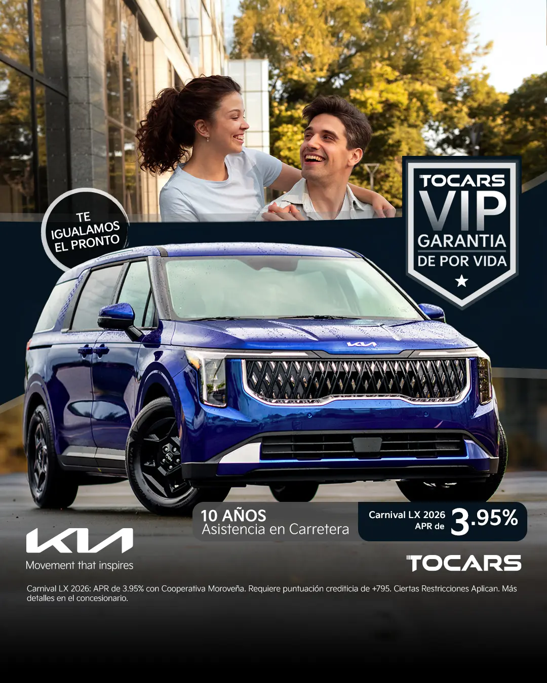 Carnival LX 2026: APR de 3.95% con Cooperativa Moroveña. Requiere puntuación crediticia de +795. Ciertas Restricciones Aplican. Más detalles en el concesionario.